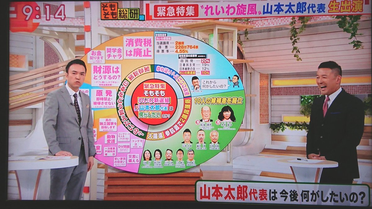 山本氏が出演したのは同番組の「そもそも総研」というコーナーにおけるれいわ新選組特集で、同特集ではれいわ新選組の「消費税廃止」などの政策紹介、なぜ障害者を国会に送り込んだのかといった党の方針を解説するといった内容でした。